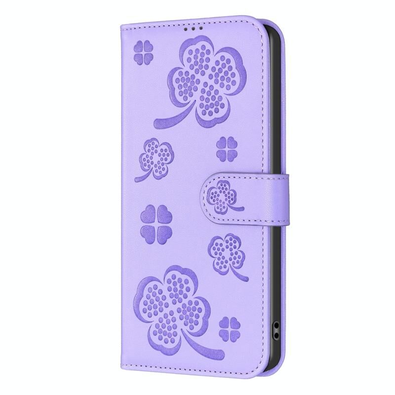 Θήκη τηλεφώνου από δέρμα με ανάγλυφο τετράφυλλο τριφύλλι για Redmi Note 14 Pro 5G / Note 14 Pro+ 5G (Κόκκινο Ρόδι)