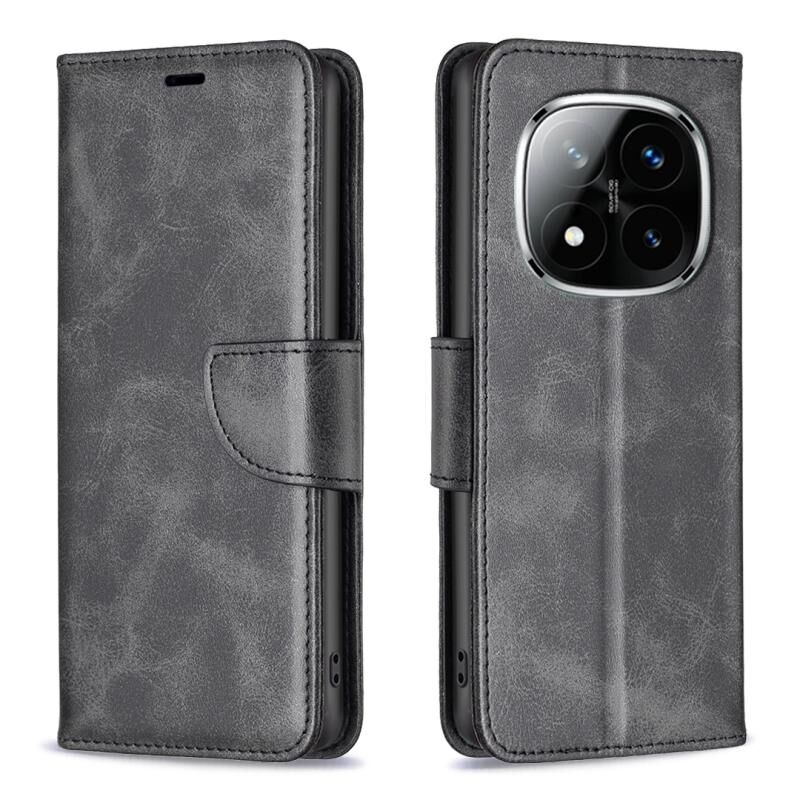 For Redmi Note 14 Pro 5G / Note 14 Pro+ 5G Lambskin Texture Pure Color Flip Leather Phone Case(Black)