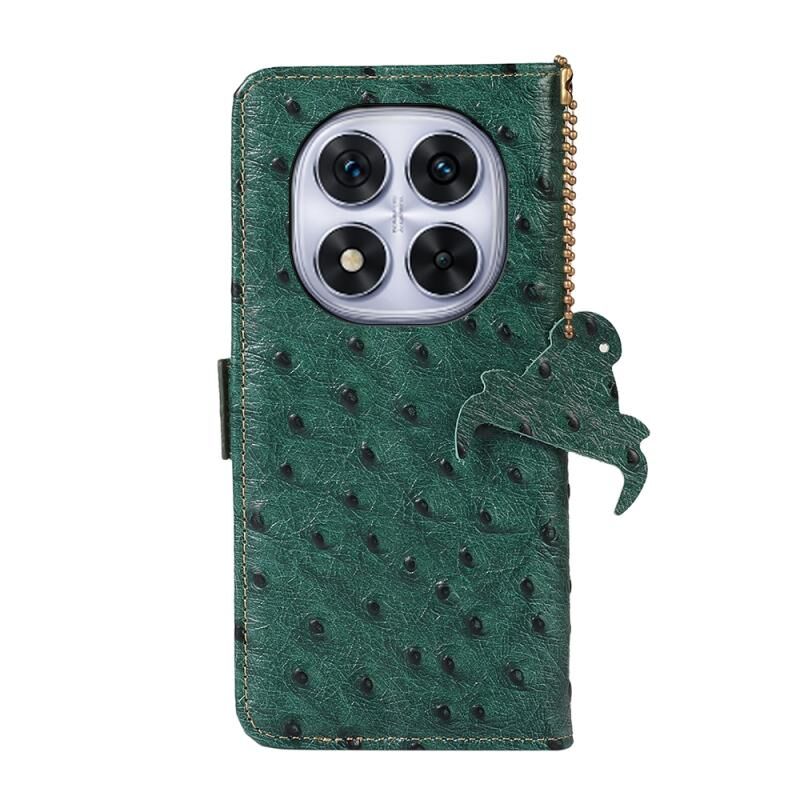 For Redmi Note 14 Pro 5G Ostrich Pattern Genuine Leather RFID Phone Case(Green)