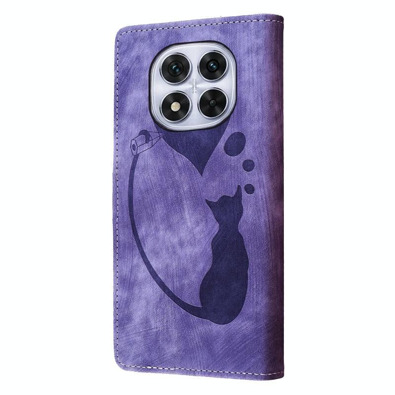 Θήκη τηλεφώνου από δέρμα με ανάγλυφο σχέδιο καρδιάς και γάτας για Redmi Note 14 Pro 5G (Μωβ)