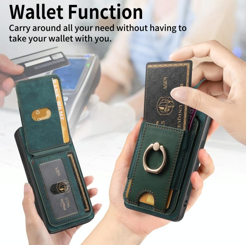 5. The leather wallet features strong built-in magnets that allow it to effortlessly snap into place on the back of your phone, easy to use and remove.