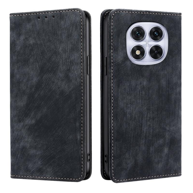 Για Redmi Note 14 Pro 5G RFID Anti-theft βούρτσα μαγνητική δερμάτινη θήκη τηλεφώνου (Μαύρο)