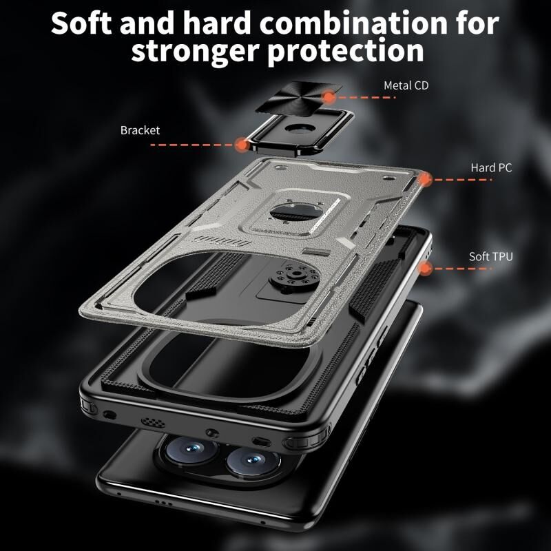 Για Redmi Note 14 Pro 5G Ring Holder PC Hybrid TPU τηλέφωνο υπόθεση (Titanium Grey)
