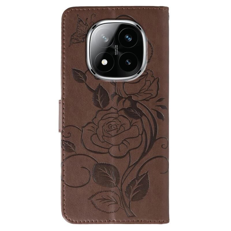 For Redmi Note 14 Pro+ 5G Rose Butterfly Embossed Leather Phone Case(Brown)