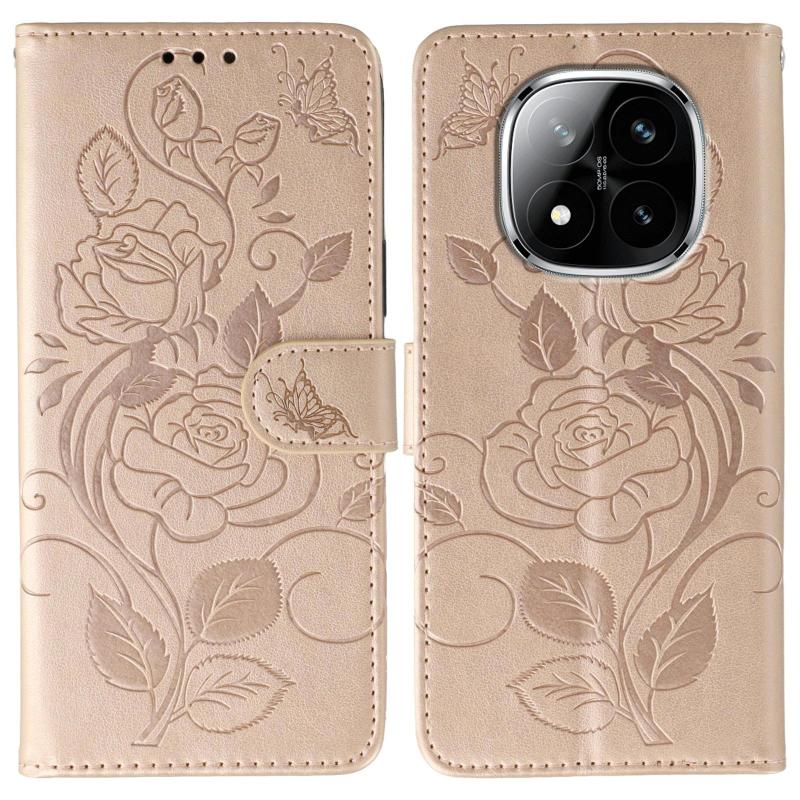 For Redmi Note 14 Pro+ 5G Rose Butterfly Embossed Leather Phone Case(Rose Gold)