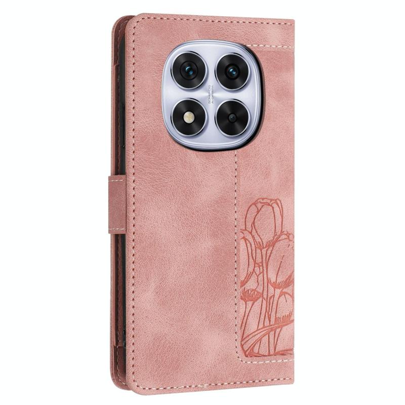 For Redmi Note 14 Pro 5G Tulips Embossed Leather Phone Case with Lanyard(Pink)