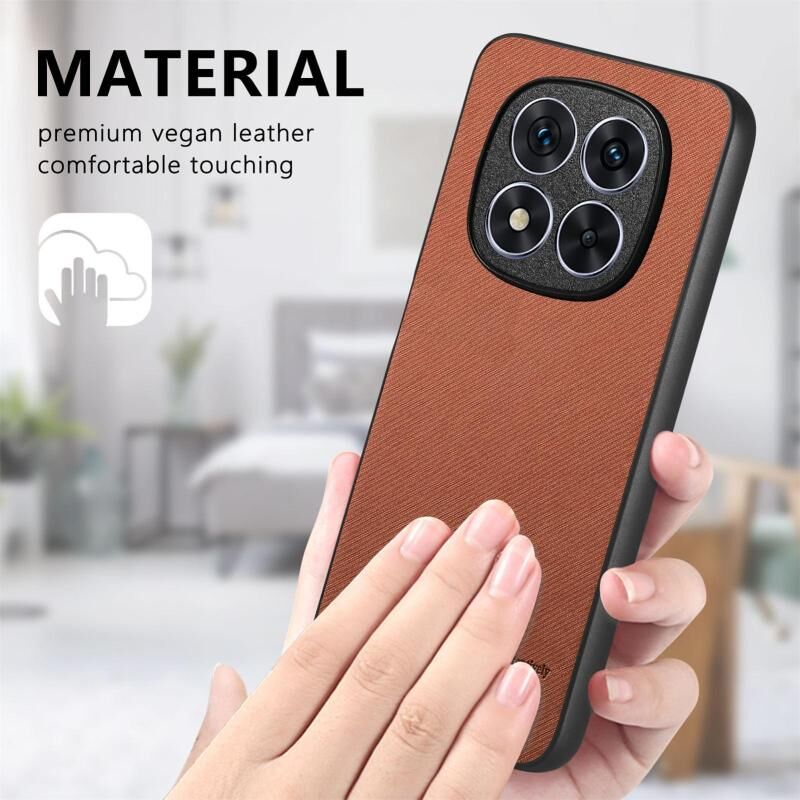 Για Redmi Note 14 Pro 5G Twill Fabric δέρμα δέρμα δέρμα πίσω τηλέφωνο υπόθεση (καφέ)