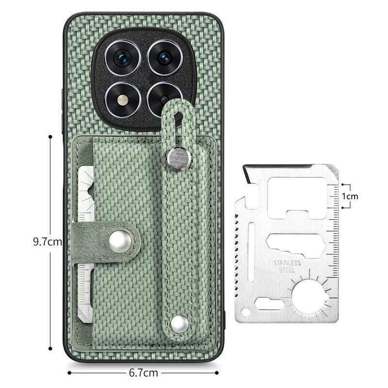 Για Redmi Note 14 Pro 5G Wristband Kickstand κάρτα πορτοφόλι πίσω τηλέφωνο υπόθεση με εργαλείο μαχαίρι (πράσινο)
