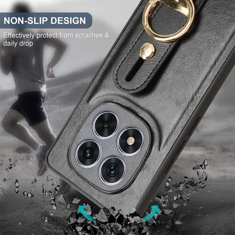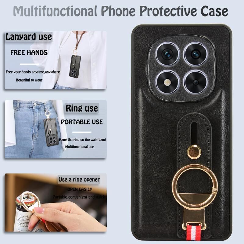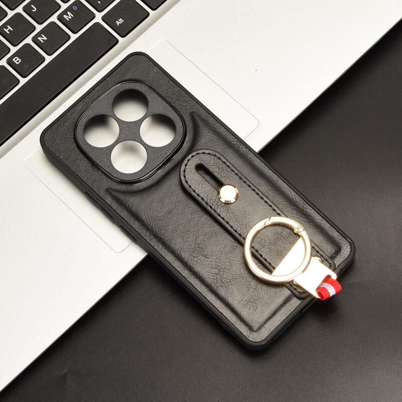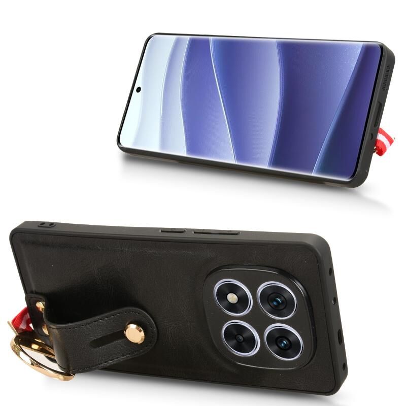 For Redmi Note 14 Pro 5G Wristband Leather Back Phone Case(Black)