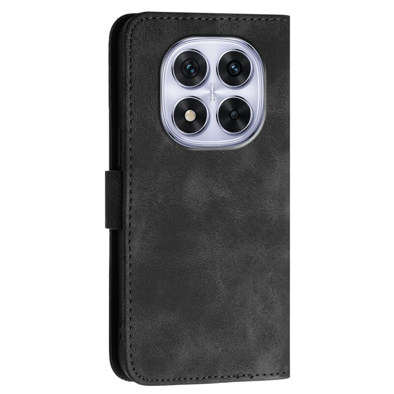 Θήκη τηλεφώνου από δέρμα με ανάγλυφο σχέδιο πλέγματος και πεταλούδας για Redmi Note 14 Pro 5G YX0080 με κορδόνι (Μαύρο)