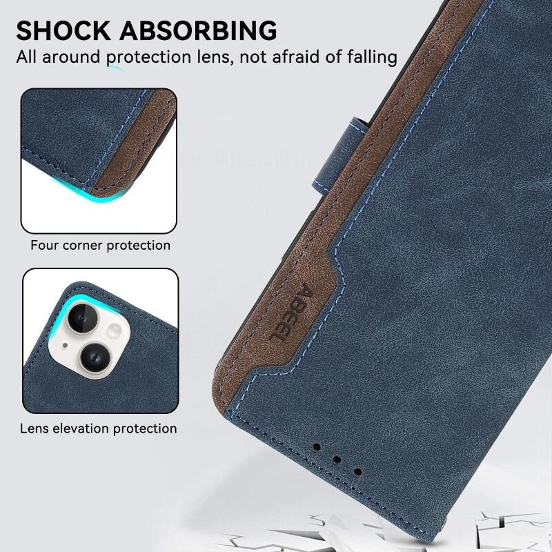 Θήκη τηλεφώνου από δέρμα με μαγνητικό κλείσιμο και προστασία RFID για Redmi Note 14S 4G ABEEL, σε χρώματα ροζ-κυανό (Color Block).