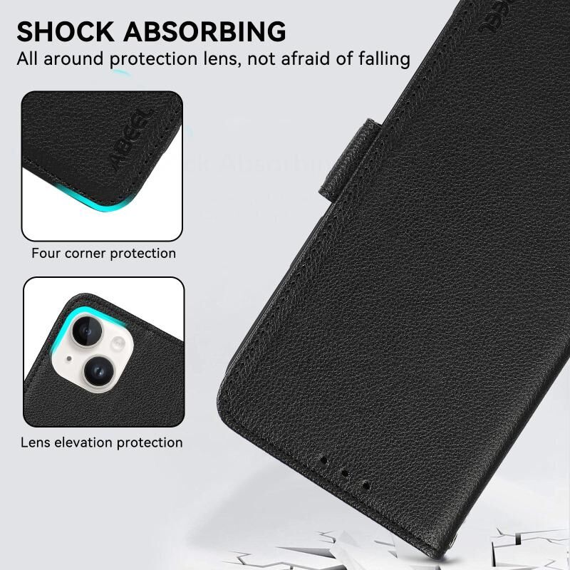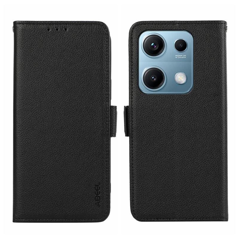 Θήκη τηλεφώνου από δέρμα με σχέδιο λύτσι και μαγνητικό κλείσιμο για Redmi Note 14S 4G ABEEL (Μαύρο)