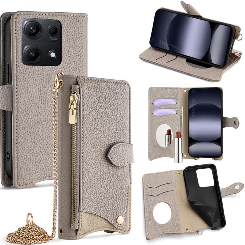 For Redmi Note 14S 4G Crossbody Chain Fishtail Litchi Leather Phone Case(Grey)