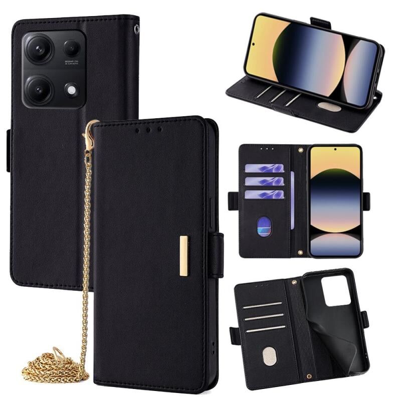 Θήκη τηλεφώνου για Redmi Note 14S 4G, δερμάτινη με αλυσίδα για χιαστή χρήση (Μαύρο)