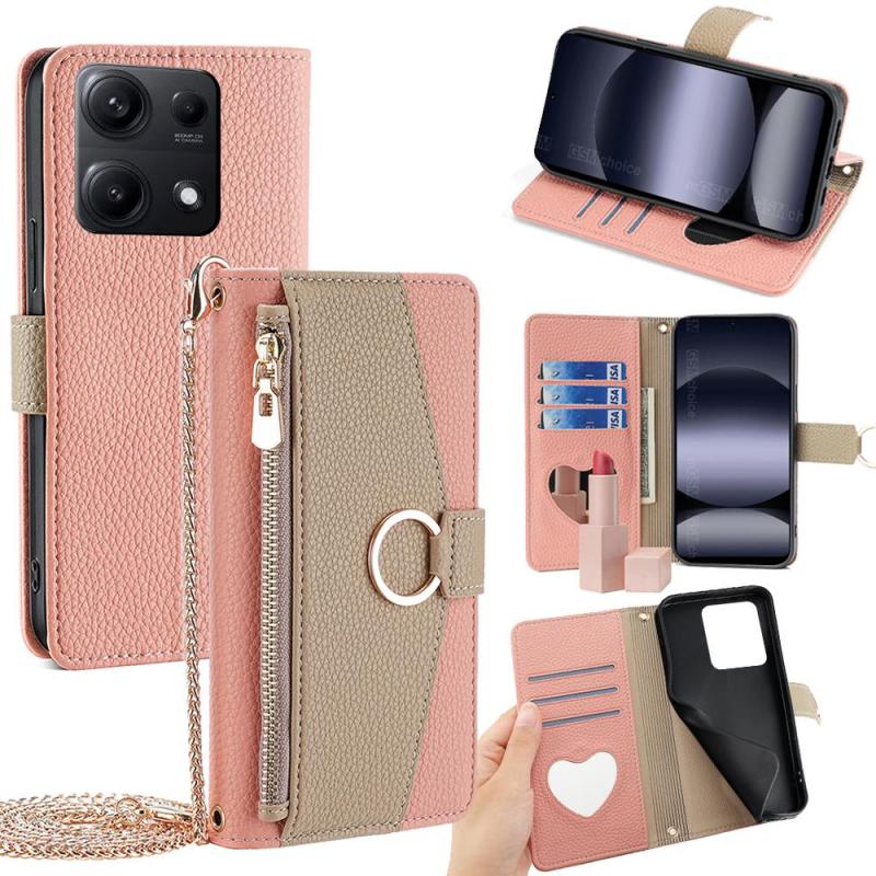 For Redmi Note 14S 4G Crossbody Litchi Texture Leather Phone Case(Pink)