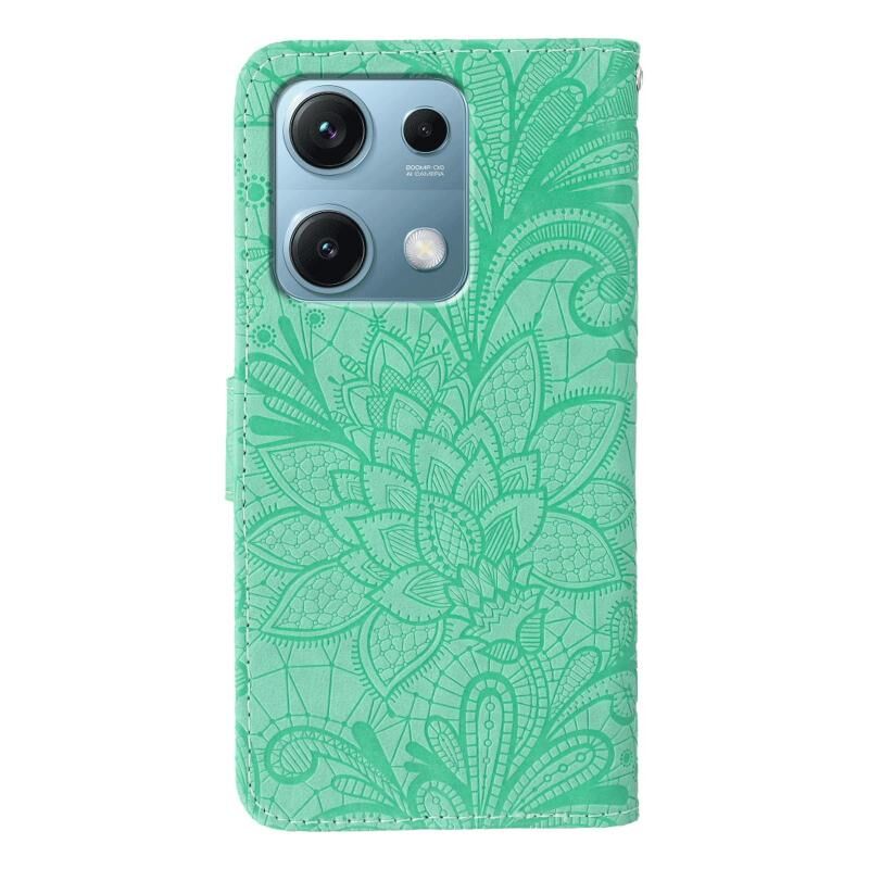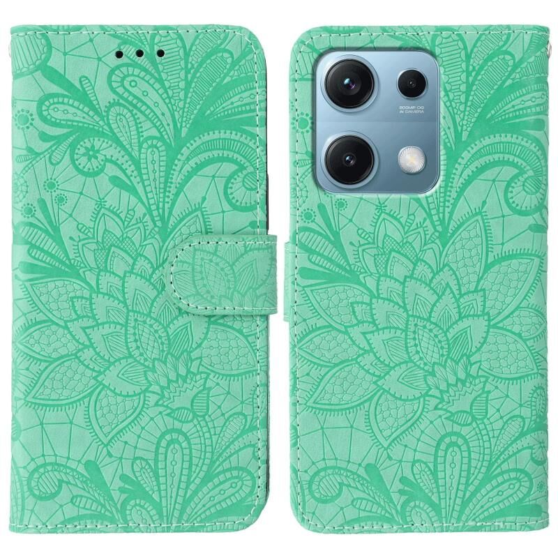 Θήκη τηλεφώνου από δέρμα με σχέδιο δαντέλας και ανάγλυφο λουλουδιού για Redmi Note 14S 4G Global (Γκρι)