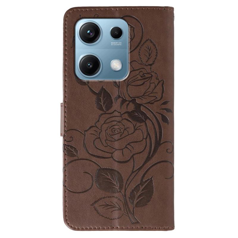 For Redmi Note 14S 4G Global Rose Butterfly Embossed Leather Phone Case(Brown)