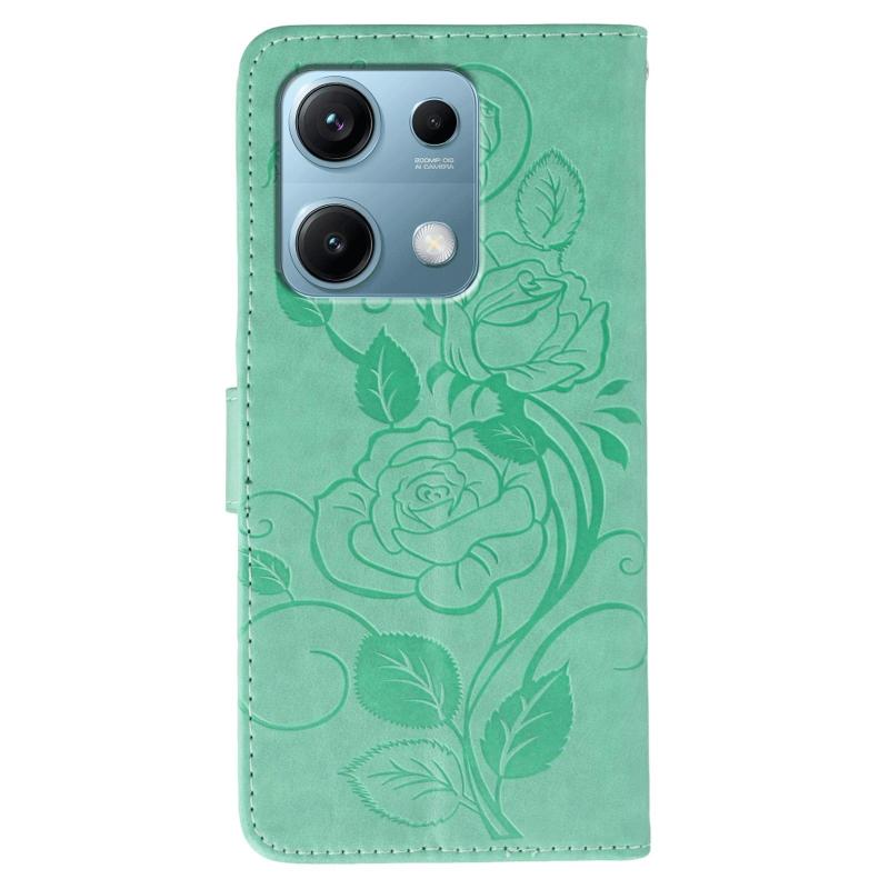 For Redmi Note 14S 4G Global Rose Butterfly Embossed Leather Phone Case(Green)