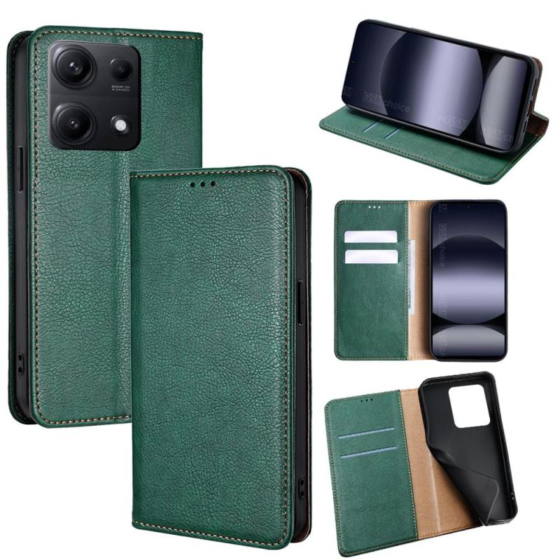 For Redmi Note 14S 4G Gloss Oil Solid Color Magnetic Leather Phone Case(Green)