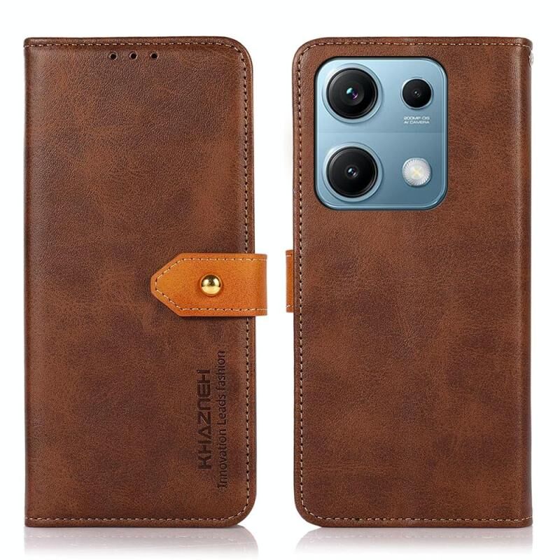 Θήκη τηλεφώνου από δέρμα με υφή δέρματος αγελάδας KHAZNEH, τύπου flip, για Redmi Note 14S 4G (Καφέ)