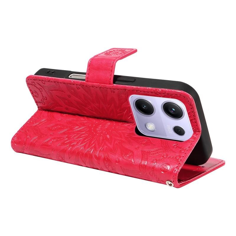 Θήκη τηλεφώνου από δέρμα με σχέδιο ανάγλυφου ηλίανθου, τύπου flip, για Redmi Note 14S 4G / Note 13 Pro 4G (Μωβ)