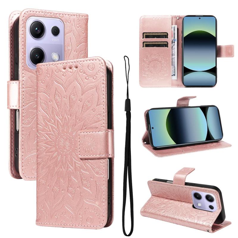 For Redmi Note 14S 4G / Note 13 Pro 4G Embossed Sunflower Pattern Flip Leather Phone Case(Rose Gold)