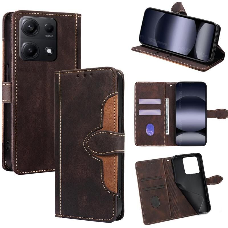 Θήκη τηλεφώνου από δέρμα με μαγνητικό κούμπωμα και αίσθηση δέρματος για Redmi Note 14S 4G (Καφέ)
