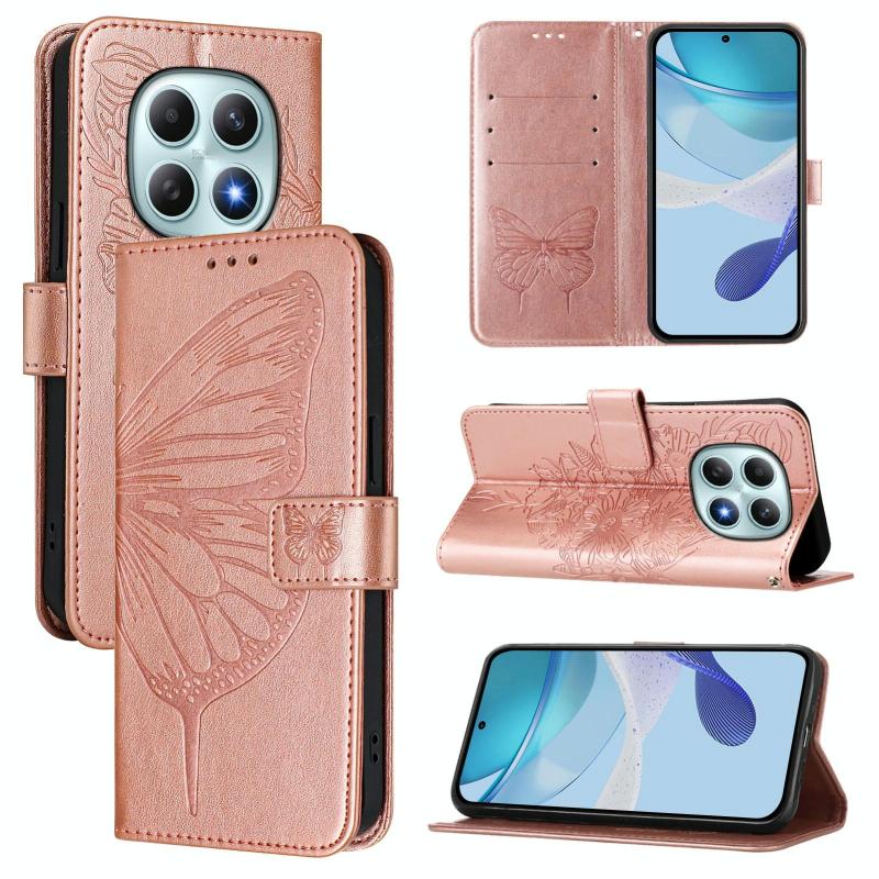 For Redmi Note 15 5G Global 164mm Embossed Butterfly Leather Phone Case(Rose Gold)