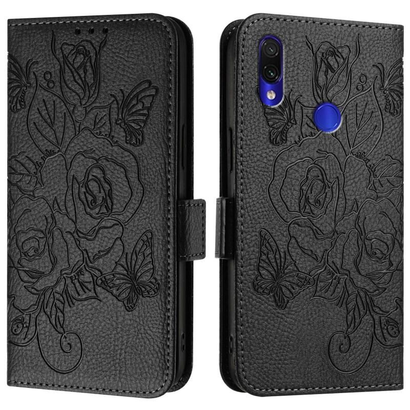 Για Redmi Note 7 / 7 Pro / 7S ανάγλυφο Rose RFID αντικλεπτική δερμάτινη θήκη τηλεφώνου (μαύρο)