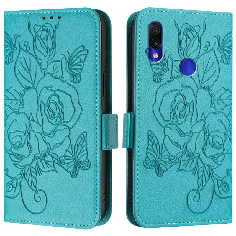 Για Redmi Note 7 / 7 Pro / 7S ανάγλυφο Rose RFID αντικλεπτική δερμάτινη θήκη τηλεφώνου (γαλάζιο)