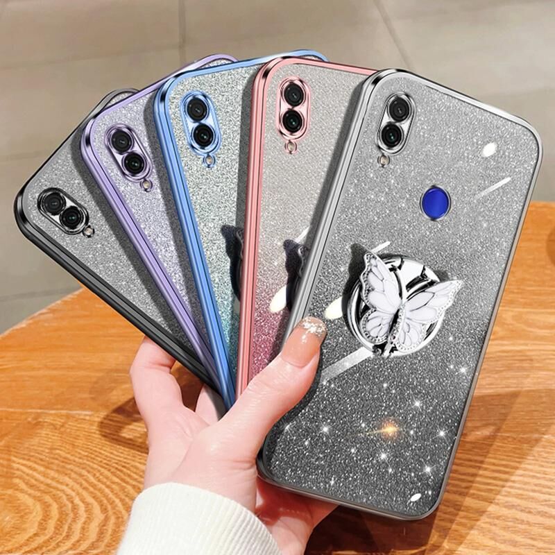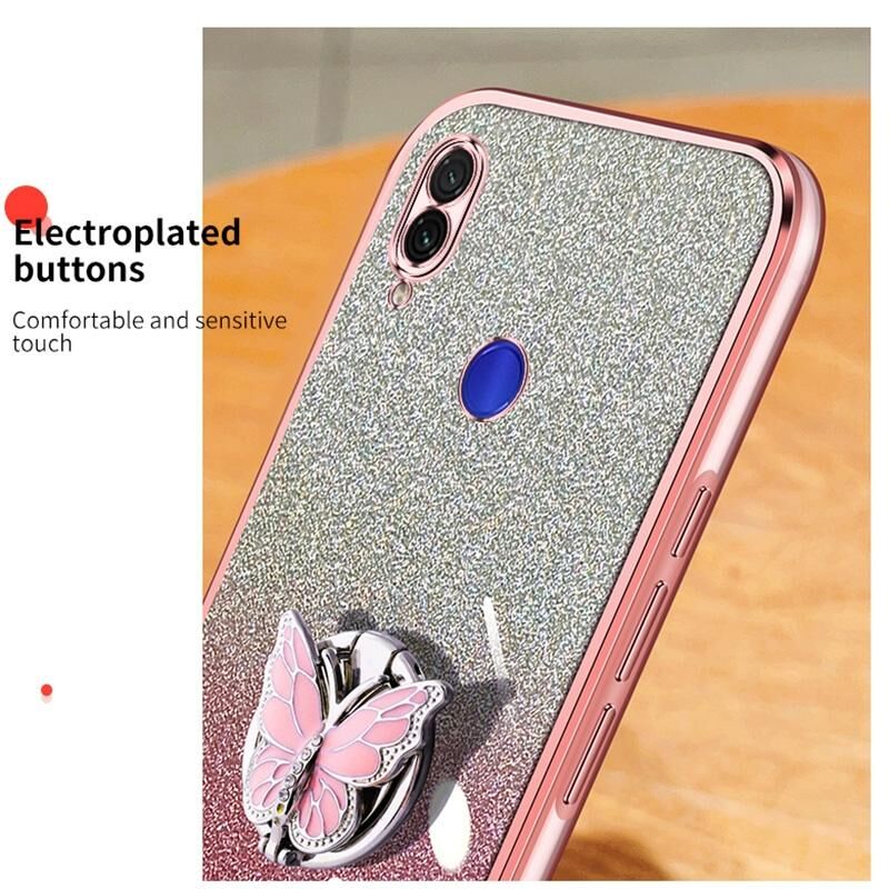 Για Redmi Note 7 Επιμεταλλωμένο διαβάθμιση Glitter πεταλούδα κάτοχος TPU τηλέφωνο υπόθεση (μωβ)