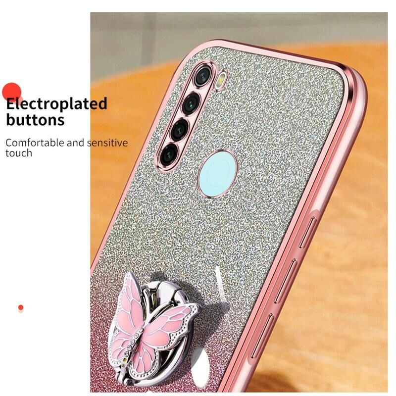 Για Redmi Note 8 Επιμεταλλωμένο διαβάθμιση Glitter πεταλούδα κάτοχος TPU τηλέφωνο υπόθεση (Sierra Blue)