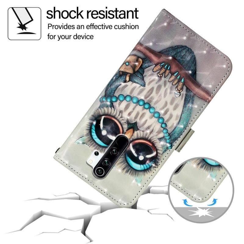 Θήκη τηλεφώνου δερμάτινη με οριζόντιο άνοιγμα και τρισδιάστατη ζωγραφική για Redmi Note 8 Pro (Γκρι κουκουβάγια)