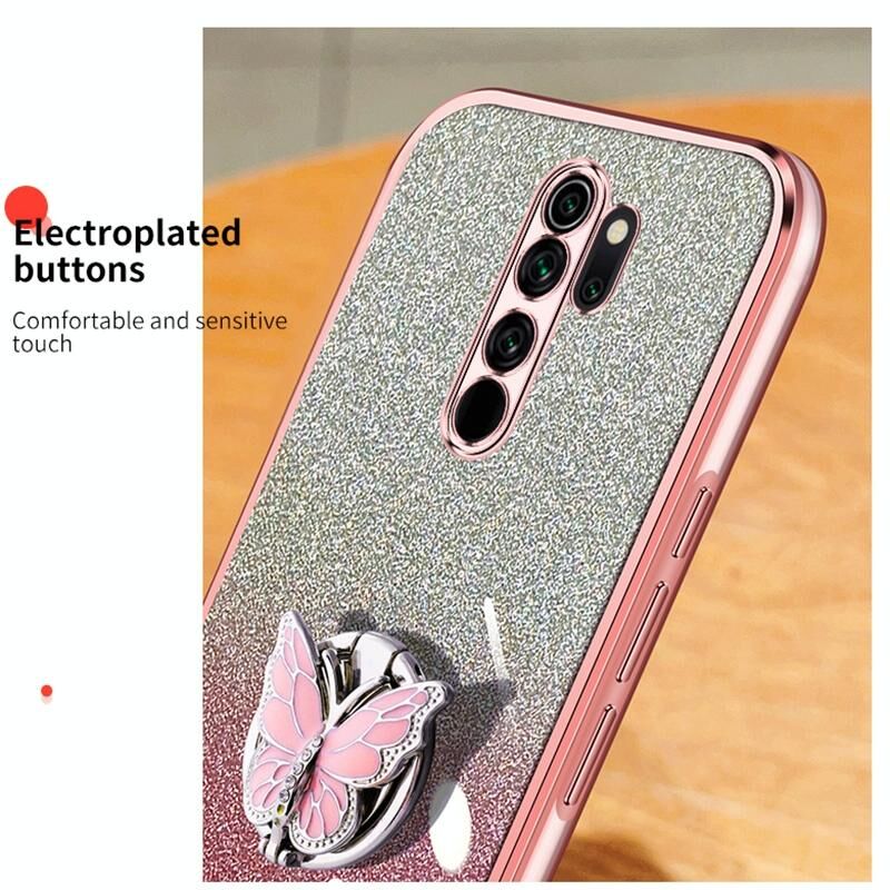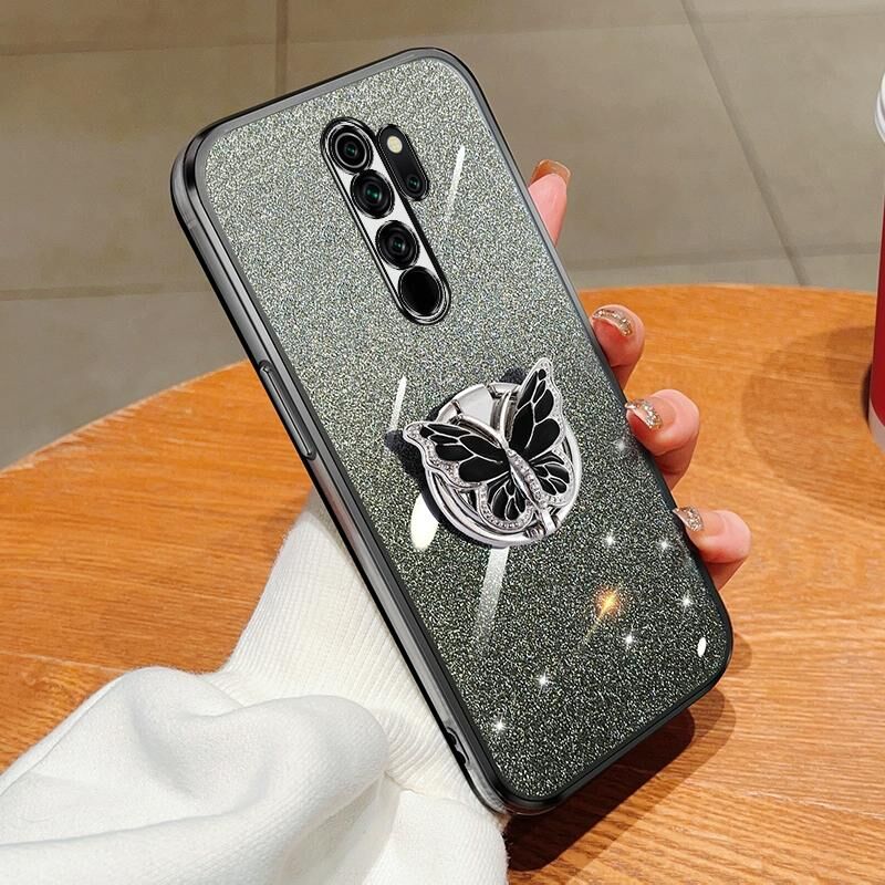 Για Redmi Note 8 Pro Επιμεταλλωμένο διαβάθμιση Glitter πεταλούδα κάτοχος TPU τηλέφωνο υπόθεση (Μαύρο)