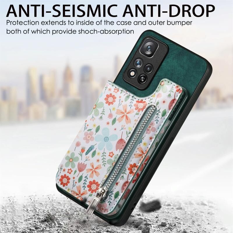 Για Redmi Note 8T Ρετρό ζωγραφισμένο φερμουάρ πορτοφόλι πίσω υπόθεση τηλεφώνου (πράσινο)