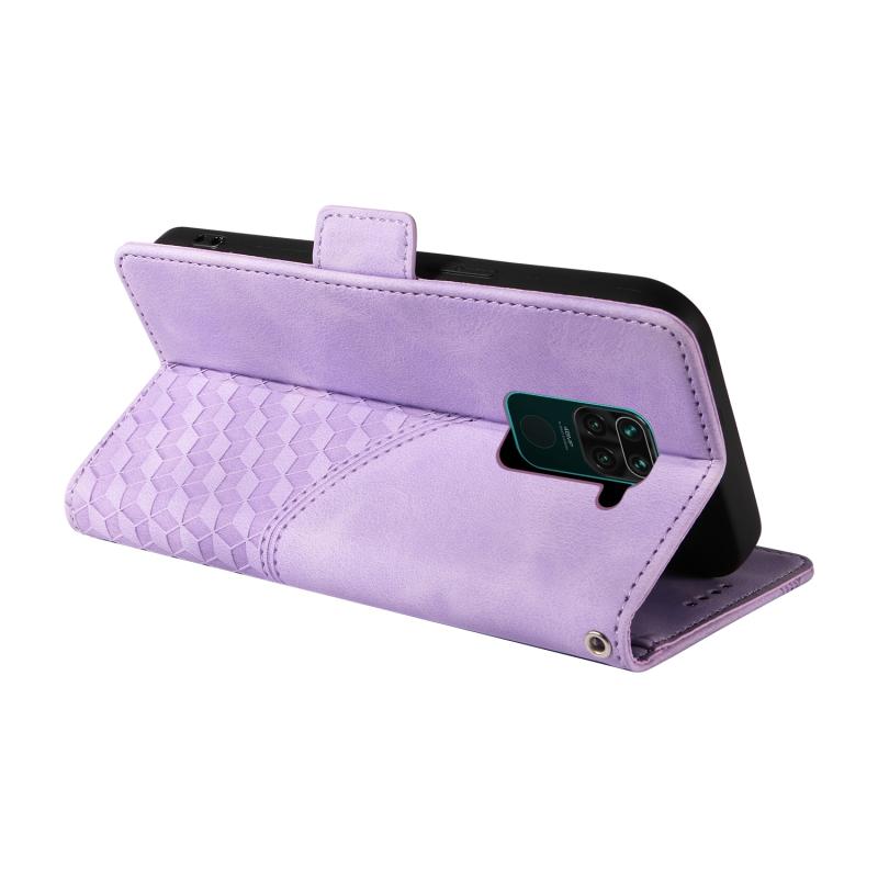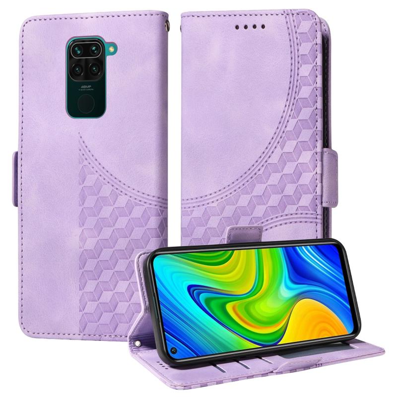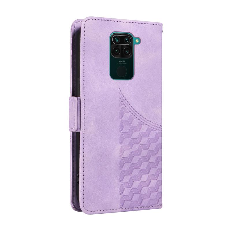 For Redmi Note 9 4G Global Embossed Rhombus Starry Leather Phone Case(Purple)