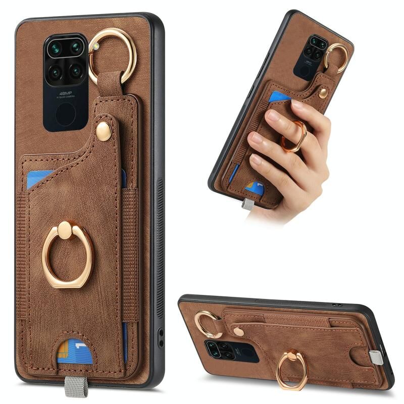 Για Redmi Note 9 4G Ρετρό δέρμα αίσθηση δαχτυλίδι κάρτα τσάντα υπόθεση τηλεφώνου με Hang Loop (καφέ)