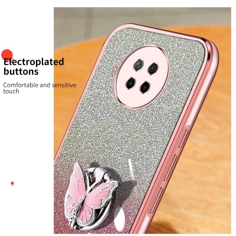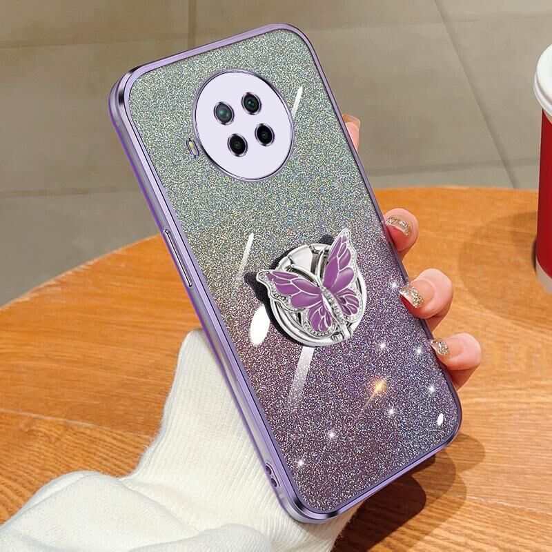 Για Redmi Note 9 Pro 5G επιμεταλλωμένο διαβάθμιση Glitter πεταλούδα κάτοχος TPU τηλέφωνο υπόθεση (μωβ)
