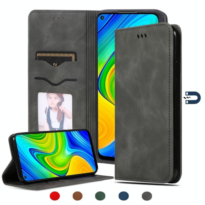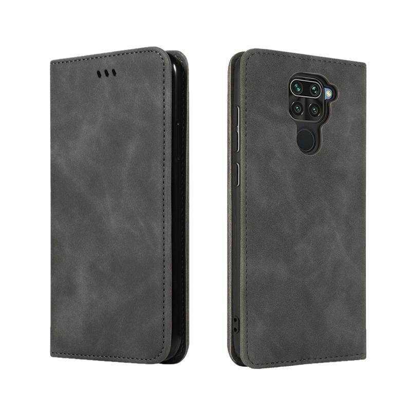 Για Redmi Note 9 / Redmi 10X 4G Retro δέρμα αίσθηση Business μαγνητική οριζόντια Flip δερμάτινη θήκη (σκούρο γκρι)