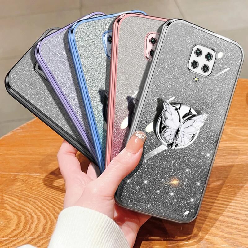 Για Redmi Note 9S Επιμεταλλωμένο διαβάθμιση Glitter πεταλούδα κάτοχος TPU τηλέφωνο υπόθεση (Sierra Blue)