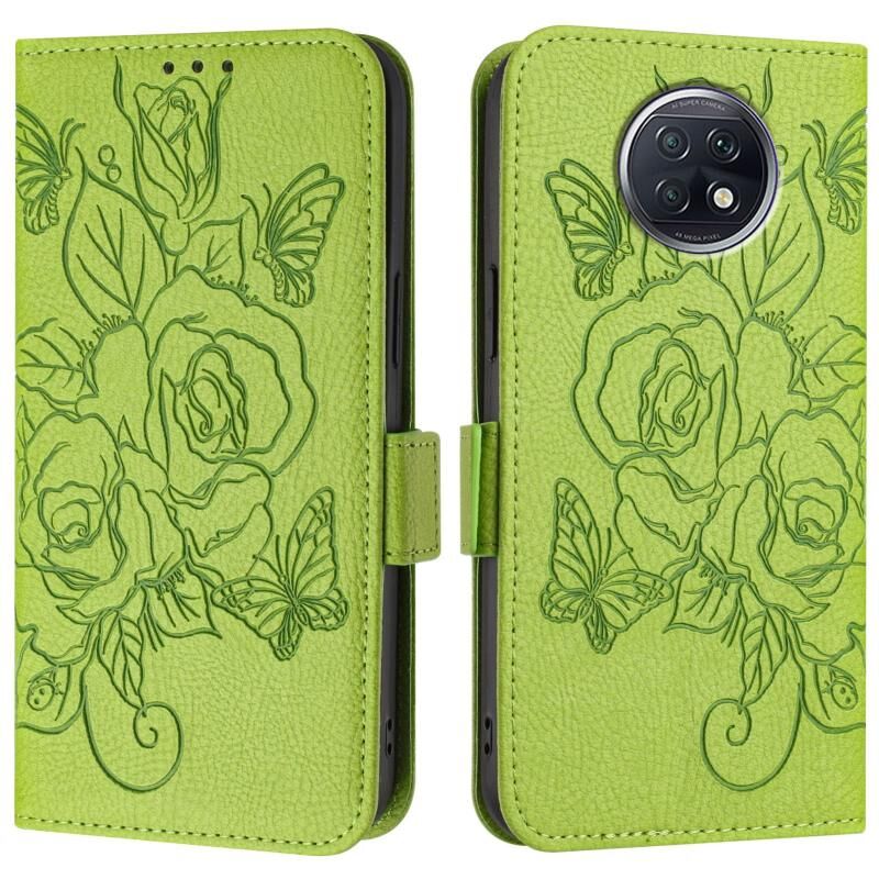 Για Redmi Note 9T Παγκόσμια ανάγλυφο Rose RFID Anti-theft δέρμα τηλέφωνο υπόθεση (Πράσινο)