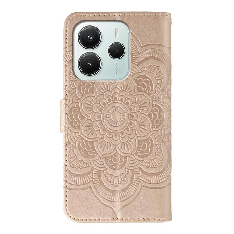 Θήκη δερμάτινη για Rose Goldmi Note14 4G 163.25mm με ανάγλυφο σχέδιο Sun Mandala (Κόκκινη)
