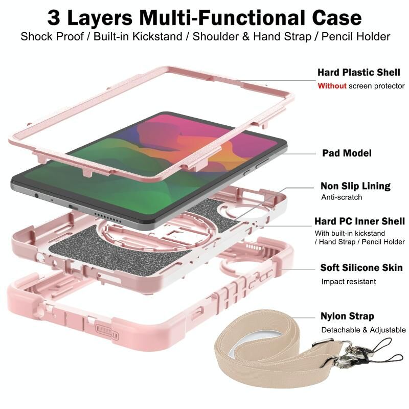 Για Redmi Pad SE 8.7 4G 360 βαθμού περιστροφής PC αντίθεση σιλικόνης Tablet υπόθεση (Rose Gold)
