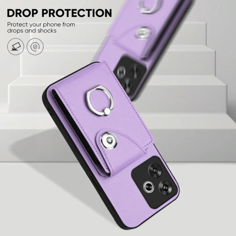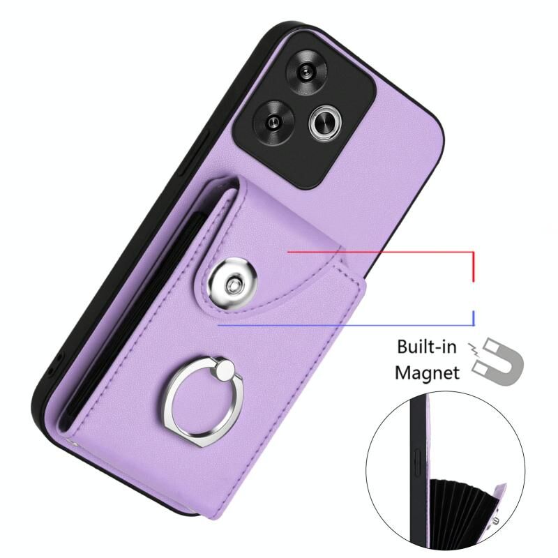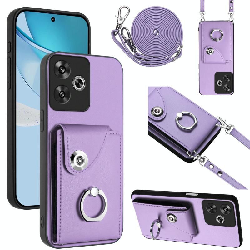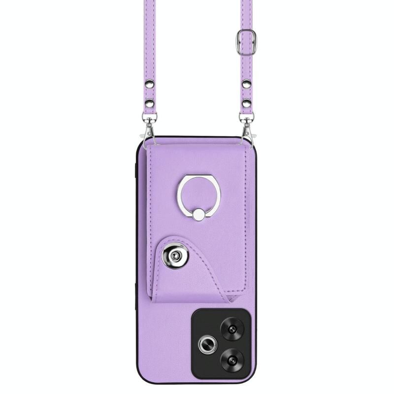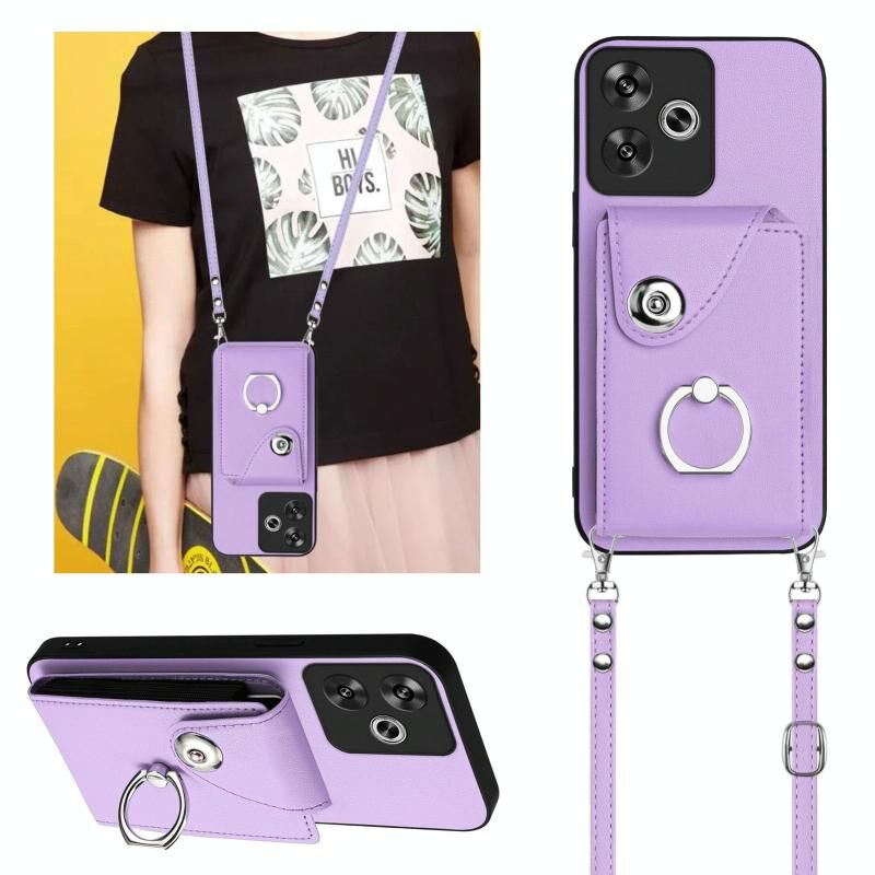 Για Redmi Turbo 3 Οργάνων κάρτα τσάντα τσάντα δαχτυλίδι κάτοχος υπόθεση τηλεφώνου με μακρύ κορδόνι (μωβ)