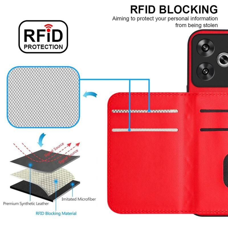 Για Redmi Turbo 3 Rhombic υφή κάρτα τσάντα RFID υπόθεση τηλεφώνου με μακρύ κορδόνι (Κόκκινο)