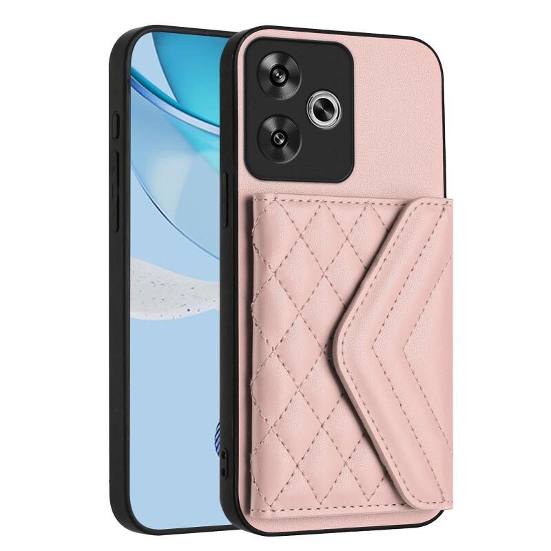Για Redmi Turbo 3 Rhombic υφή κάρτα τσάντα RFID υπόθεση τηλεφώνου με μακρύ κορδόνι (Ροζ χρυσός)