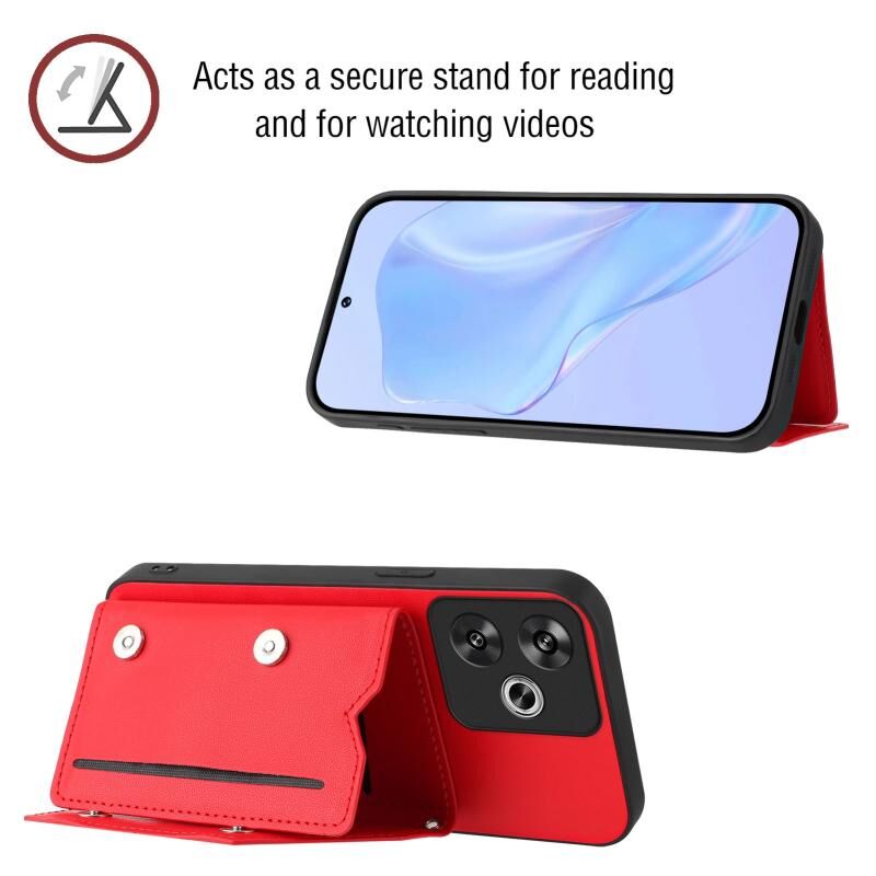 Για Redmi Turbo 3 Skin Feel Τέσσερις υποδοχές καρτών υπόθεση τηλεφώνου με λουράκι καρπού (Κόκκινο)