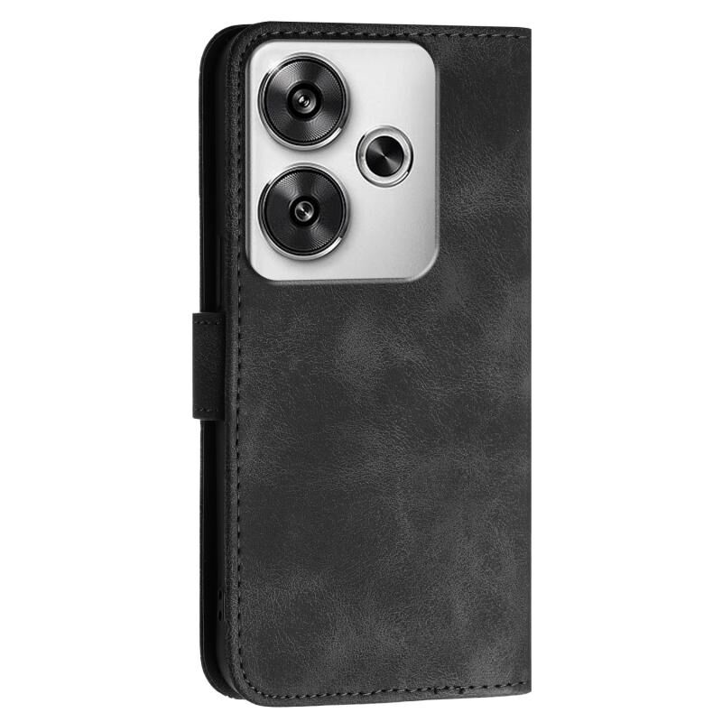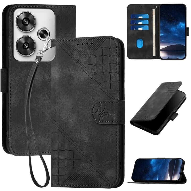 Θήκη τηλεφώνου από δέρμα με ανάγλυφο σχέδιο πλέγματος και πεταλούδας για Redmi Turbo 3 YX0080 με κορδόνι (Σκούρο Μπλε)