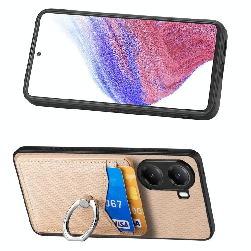 Για Redmi Turbo 4 Carbon Fiber κάρτα πορτοφόλι δαχτυλίδι υπόθεση τηλεφώνου (Χακί)