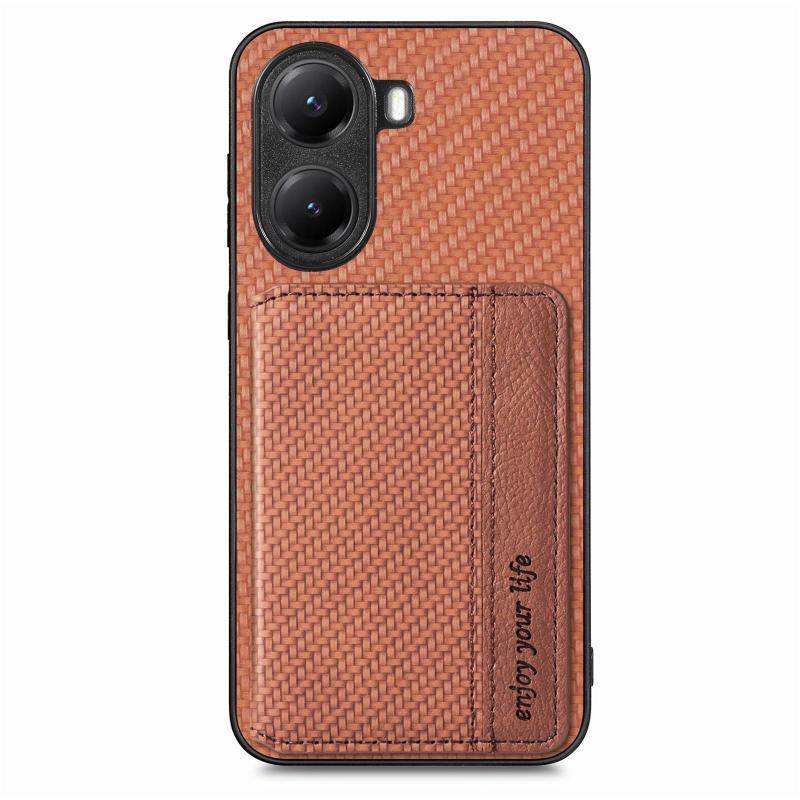 For Redmi Turbo 4 Carbon Fiber Magnetic Card Bag Phone Case(Brown)